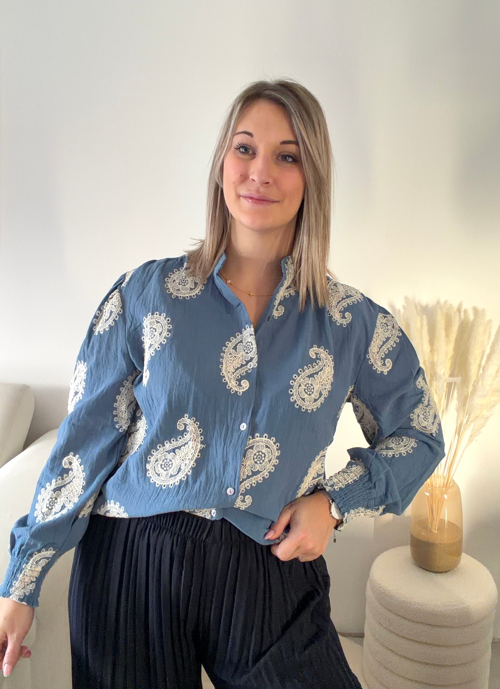 Adoptez un look frais et élégant avec cette chemise brodée, parfaite pour les saisons printemps et été. Sa matière garantit confort et légèreté, tandis que les détails brodés ajoutent une touche raffinée. Polyvalente, elle se porte facilement en journée ou en soirée pour un style chic et décontracté.