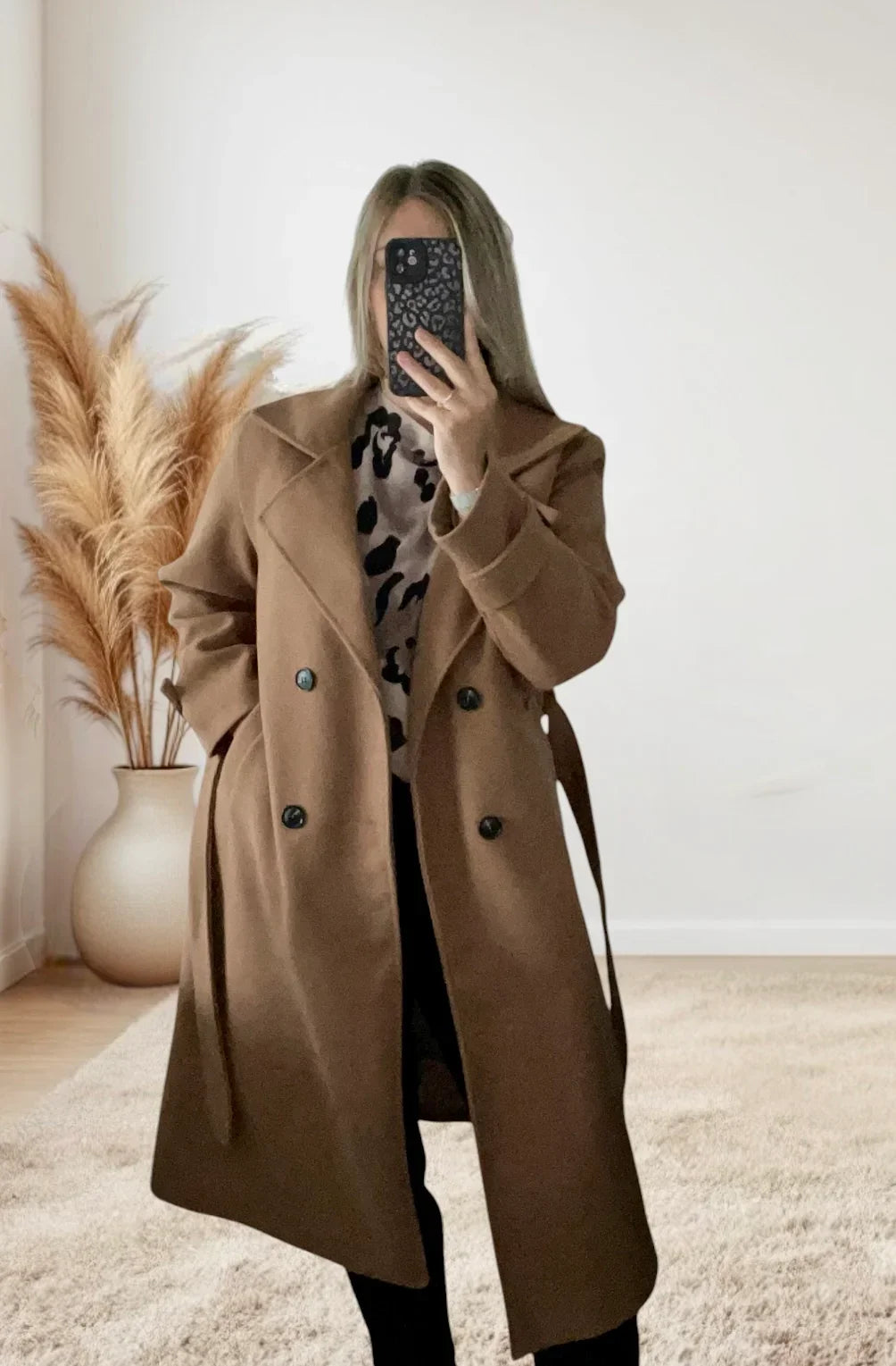 Un intemporel du vestiaire féminin, ce manteau camel en drap de laine allie élégance et confort pour la saison froide. Sa coupe droite et son double boutonnage en font une pièce chic et facile à porter au quotidien.
