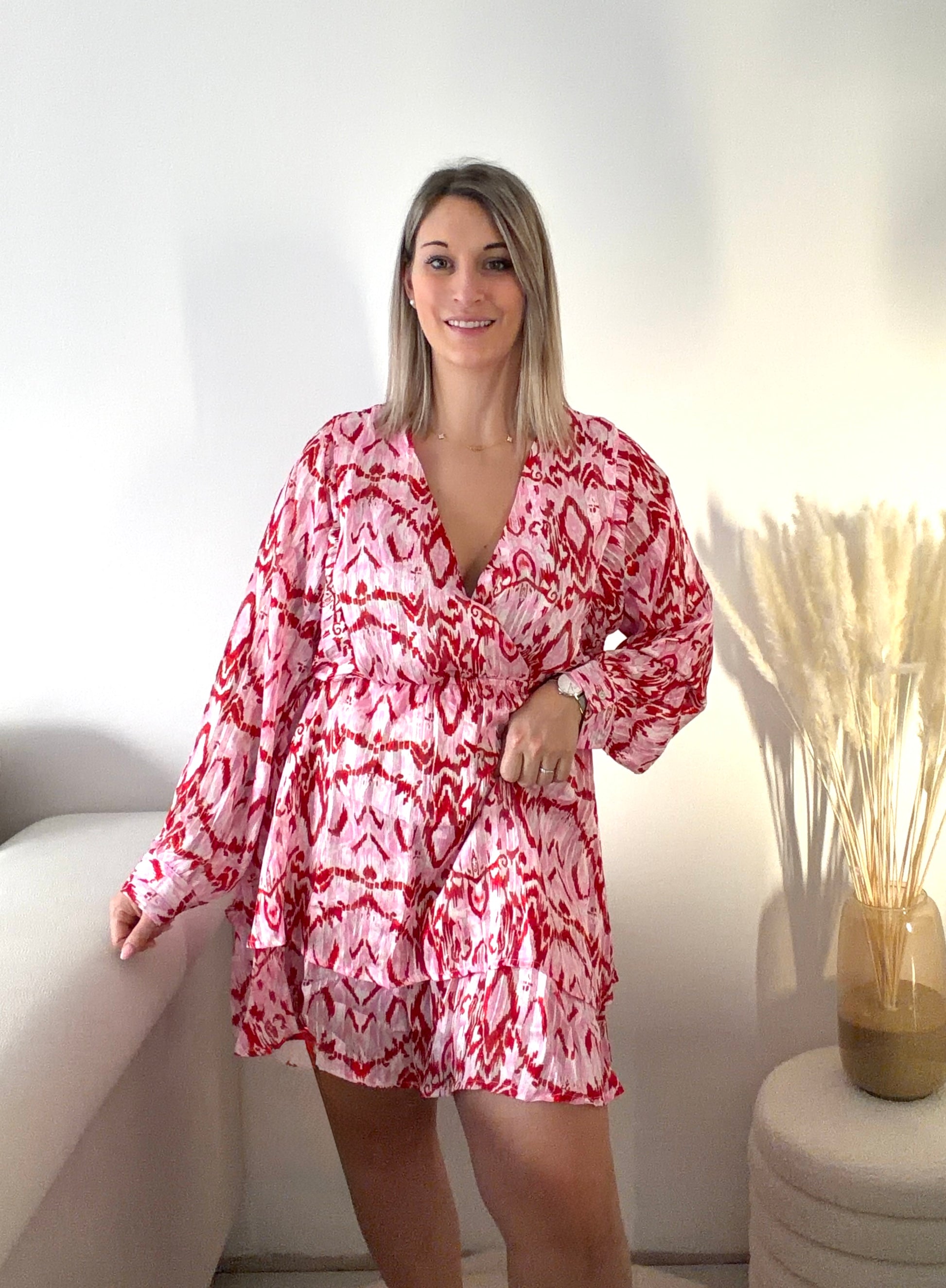 Craquez pour cette robe courte à manches longues au bel imprimé rose et rouge, parfaite pour apporter une touche de féminité et de fraîcheur à votre dressing. Sa coupe courte met en valeur la silhouette tandis que ses manches longues équilibrent le look pour un rendu chic et élégant. Légère et agréable à porter, elle convient aussi bien au quotidien qu’aux sorties ou occasions spéciales.