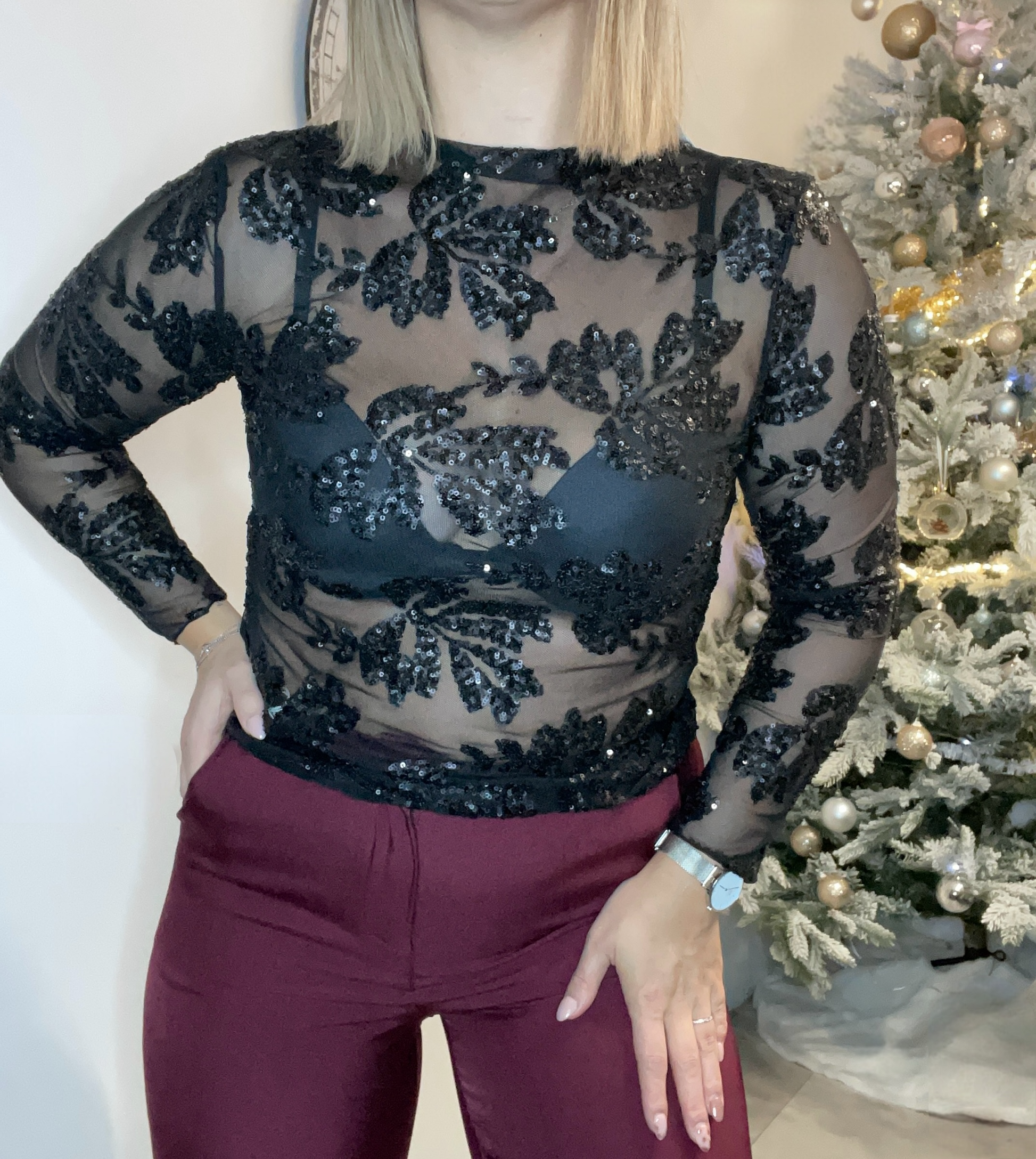 Féminin, audacieux et ultra-tendance, ce top manches longues transparent met parfaitement en valeur la silhouette grâce à sa coupe ajustée et ses détails brodé fleuris en sequin. Parfait pour des looks de fêtes et soirées.
